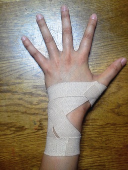 それで毎回このようなサポーターを装着します、数週間も。。。。
